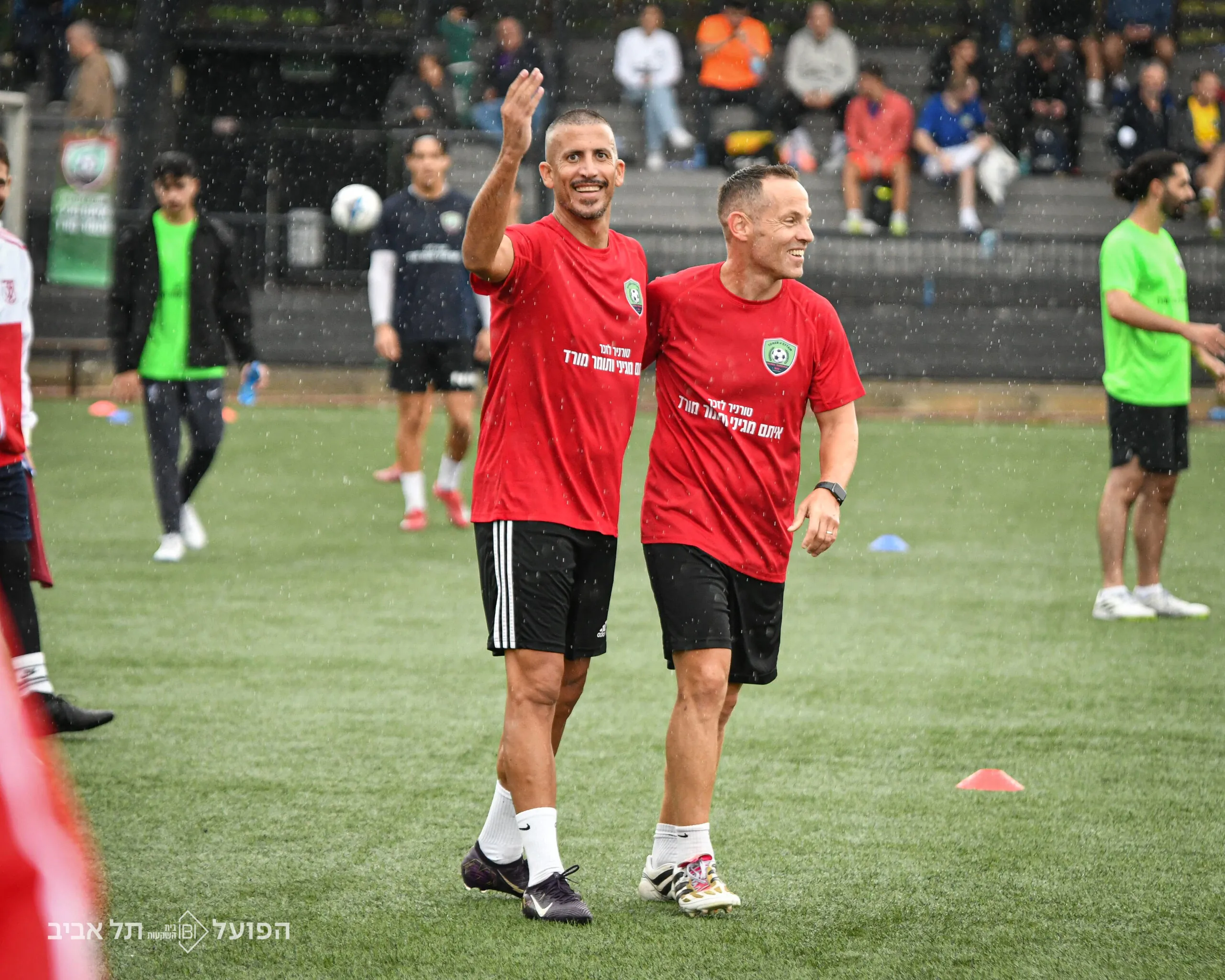 לכר הדשא עלו משפחותיהם של אוהדי הפועל ב״ש: שחר קריאף ז״ל שנרצח בחוף זיקים ועמית כהן ז״ל שנרצח במסיבת הנובה, יחד עם משפחותיהם של הפועל תל אביב שנרצחו בטבח הנורא וגופותיהם מוחזקות ברצועת עזה: מני גודארד ז״ל תושב בארי וליאור רודאיף ז״ל תושב ניר יצחק.